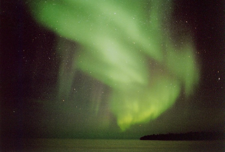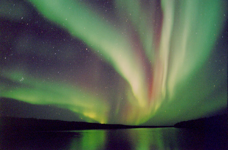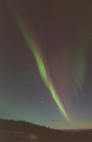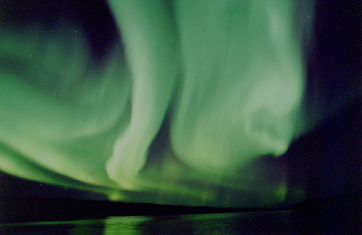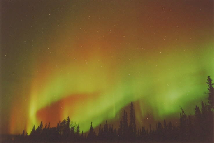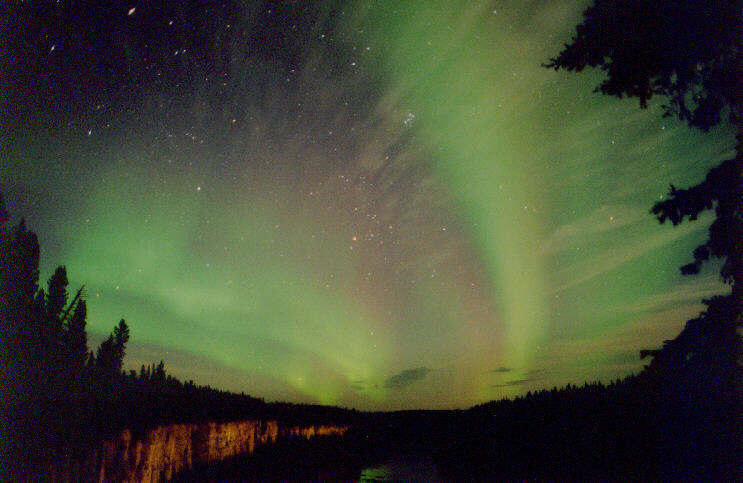 This was taken very early on October 4, 2003, beside Alexandra Falls on the Hay River in the Twin Falls Gorge Territorial Park, Northwest Territories. Photo details: Fuji Superia 800, 24 mm, f 1.8, exposed for 30 seconds. John