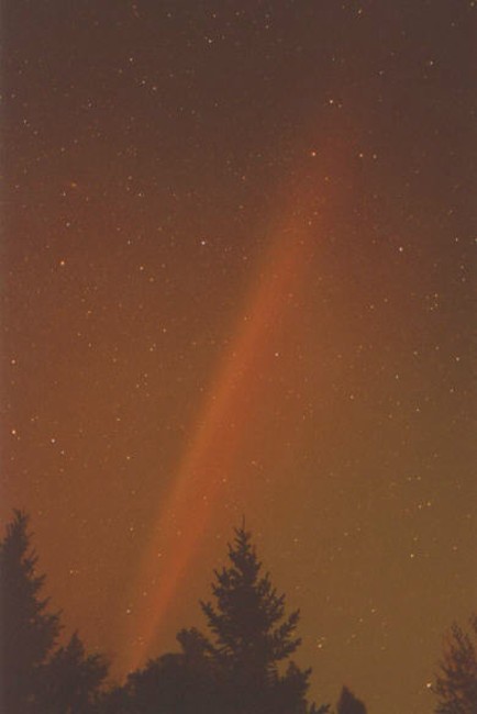 This was taken October 5, 2003, from Alexandra Falls, Twin Falls Gorge Territorial Park, Northwest Territories. The three quarter moon has illuminated one side of the Hay River gorge. Photo details: Fuji Superia 400, 24 mm, f 1.8, exposed for 30 seconds.