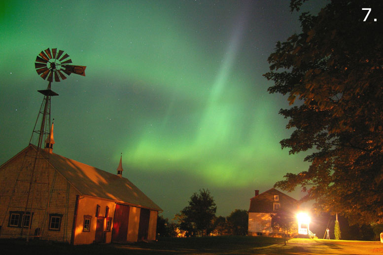 This aurora borealis with purple colors over St-Vallier near to Quebec city Canada captured in april 9 2006 at 4 h 40 am after a painful hunting through a very cloudy night Pentax istDS lens 18mmSee more photos by:Gilles Boutin Lévis Québec Canada |