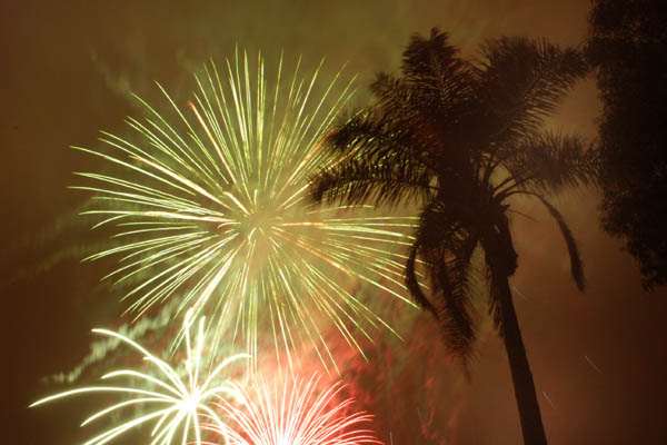 exposure of about 3 seconds of fireworks at f8. Ektachrome 100 film. July
