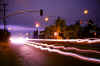Fujichrome 100. Light streaks caused by a bus passing through the scene.