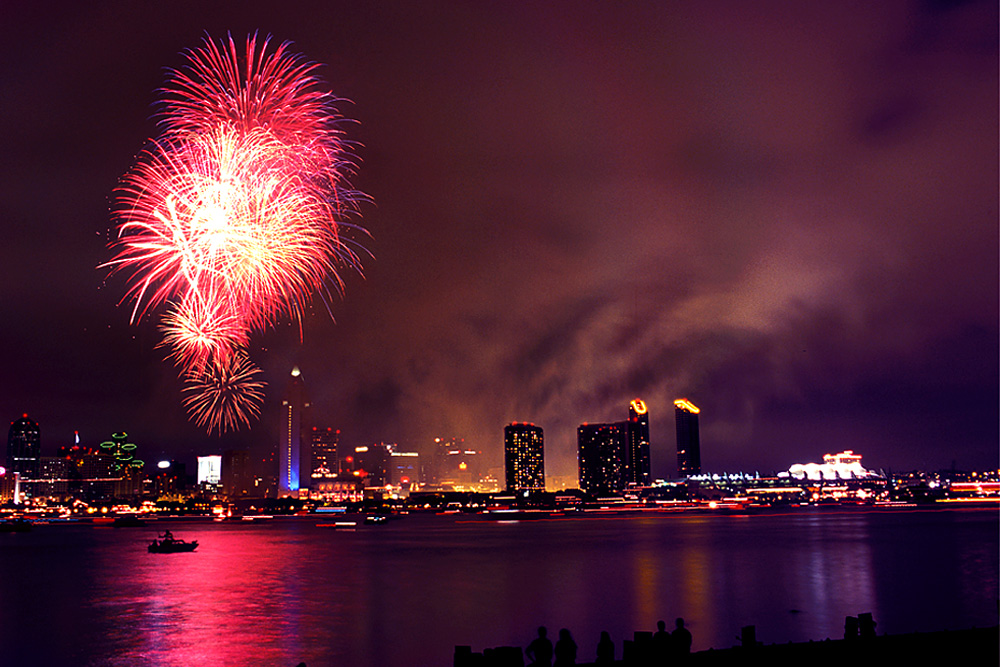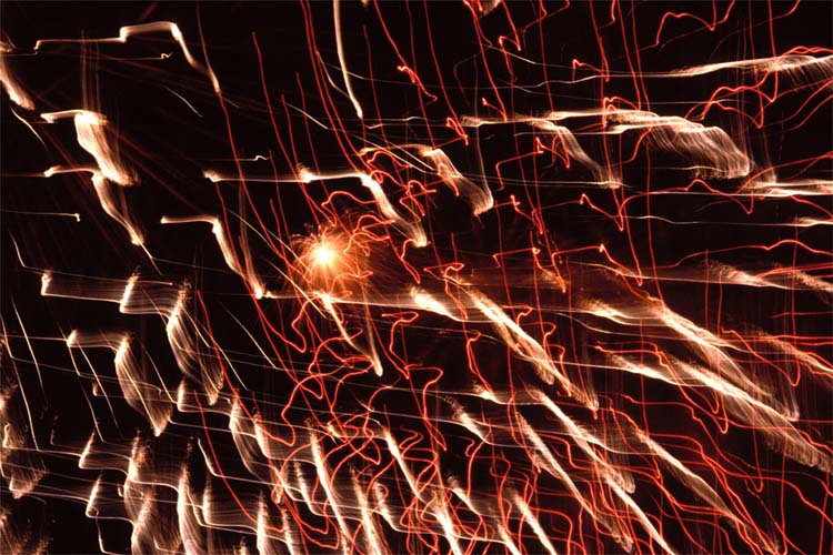 exposure of about 3 seconds of fireworks. Ektachrome 100 film. July Mid