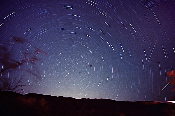 Trails and meteor or shooting star, shot at the Tamarisk Grove