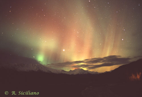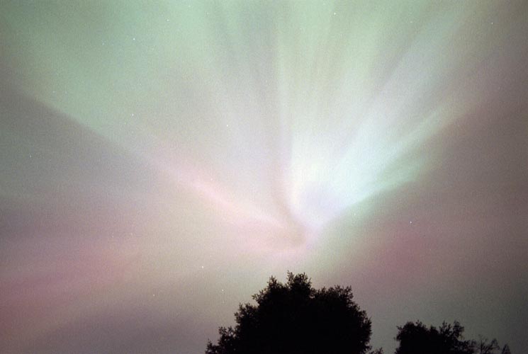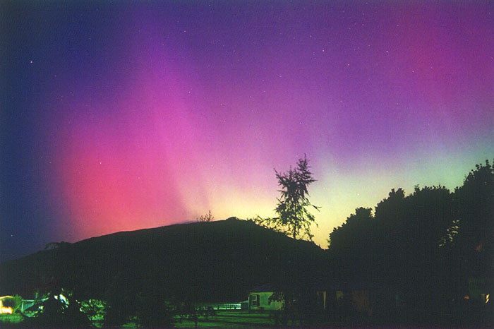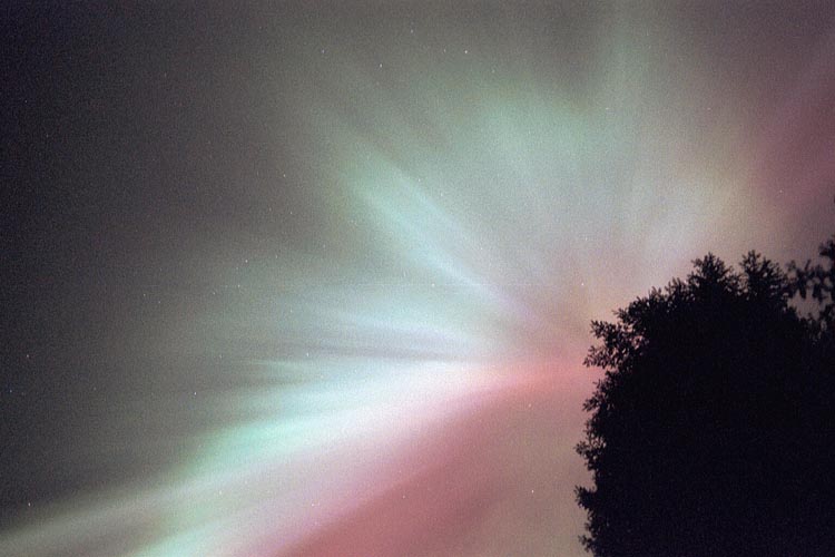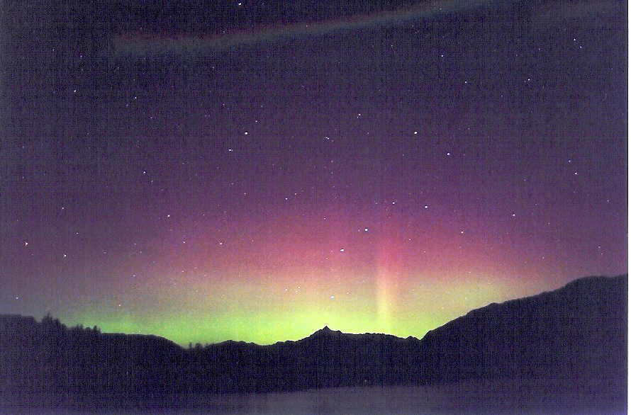 Aurora, August 17, 2003 from Hamilton, Washington, USA. You can see the rayed bands over Mt Josephine even though the photo is overexposed.Wade B Clark Jr - Hamilton, Washington, USA |