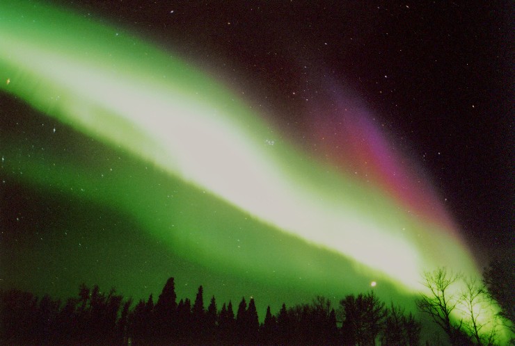 2004/01/25 brief auroral display at 01:00. The temp was around 0 degrees in Two Rivers, WI. This bright curtain shot across the horizon, and faded again 15 minutes later. I was lucky enough to be driving through a rural area with a camera & tripod handy. Canon G2 digital, ASA 400, f 2.0 for 15 sec.See more photos by: Peg Zenko |