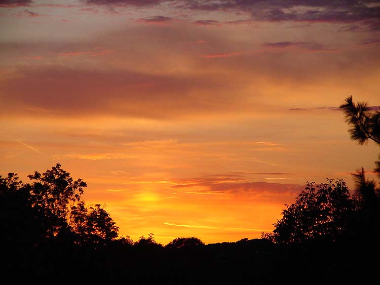This is a picture of the sunrise at 5:45am taken from my back yard. I stayed up all night the night before and took this shot. There is a nice reflection off of the pool here as well. Allison Casalena Baltimore, Maryland. |