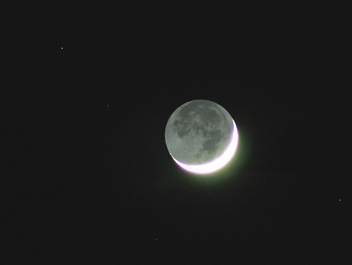 Two day old crescent moon and earthshine setting behind Lyman Hill in Skagit County, Washington State, USA. Image taken June 19, 2004, with a Canon Digital Rebel attached to an 80mm refractor.See more photos by: Wade B Clark Jr |