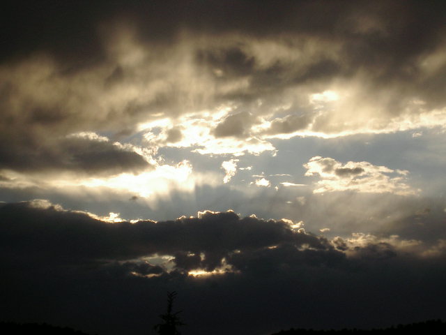"Cloudburst" of evening crepuscular rays over the water of Green Bay. Taken with a Canon G2 digital on 2003/09/24.e-mail to: Peg Zenko - Green Bay, WI USA |