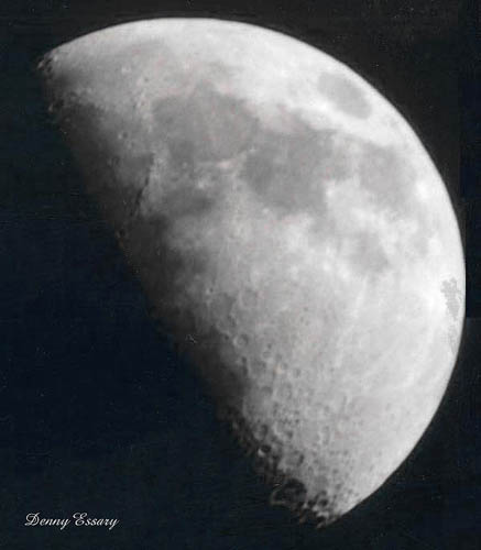 I took this photo with 400 speed film . I have a cannon ti with a 2000mm vivitar lens. The moon was half full .e-mail to: Denny Essary - Thompsonville, Illinois |