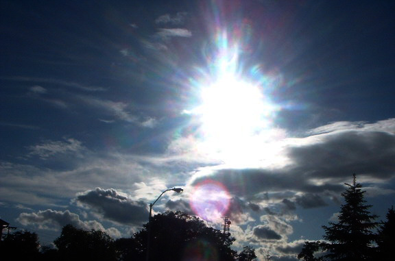 This is a picture of the sun with a nice lens flare taken from my driveway in