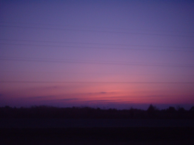 This is a picture I took in April of 2002. I was awakened at 5 AM by my husband to come look at the sunrise. As you can see, it was worth being woken up for!e-mail to: Prairie Wind Stock |