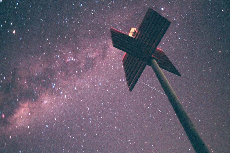 looking south at 9:45 UTC on Nov. 6th, 2001. The Southern Cross and pointers are