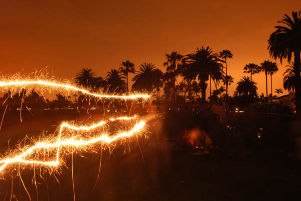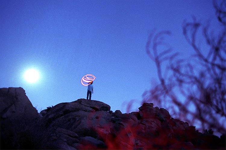 at f 5.6. The streak created by swirling a powerful Maglite through scene.