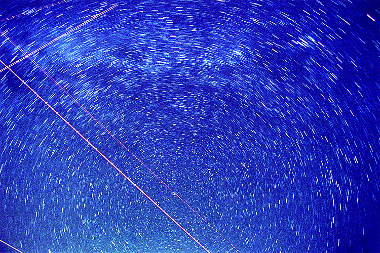Trails and meteor or shooting star, shot at the Tamarisk Grove