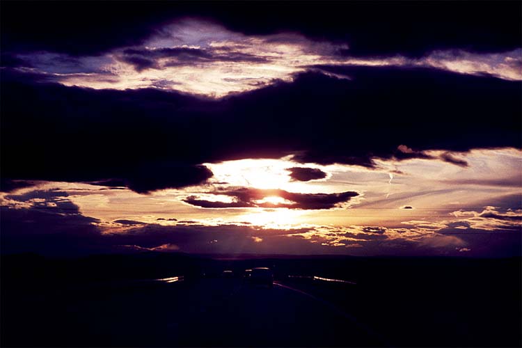 sunset from a moving car in New Mexico. 1/125 at f8. Kodachrome 200. 1995 |
