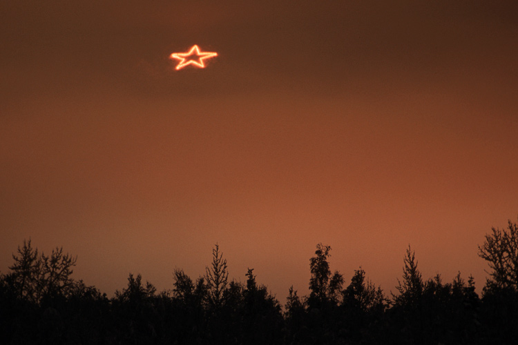 from nearly everywhere in Anchorage.I've also included a second photo that is a close-up crop of the overall photo. It clearly shows the star and the moonlight shining on the frozen surface of the lake. See more photos by: Scott McGee - Anchorage, Alaska |