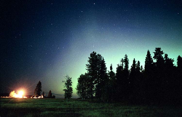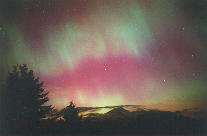 Aurora, August 17, 2003 from Hamilton, Washington, USA. You can see the rayed bands over Mt Josephine even though the photo is overexposed.Wade B Clark Jr - Hamilton, Washington, USA |