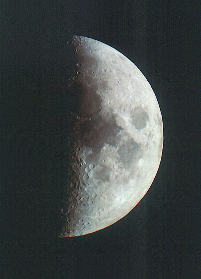 I took this photo with 400 speed film . I have a cannon ti with a 2000mm vivitar lens. The moon was half full .e-mail to: Denny Essary - Thompsonville, Illinois |