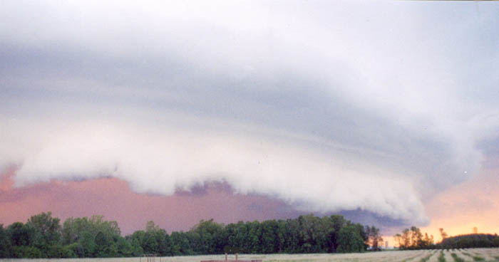 in Center Valley, WI, just before sunset on 2004//06/13. Though it looks like a severe weather system, that is not necessarily the case with this type of cloud. "We thought it looked like an alien spaceship ready to scoop us all up!"e-mail to: Austin Loveless |