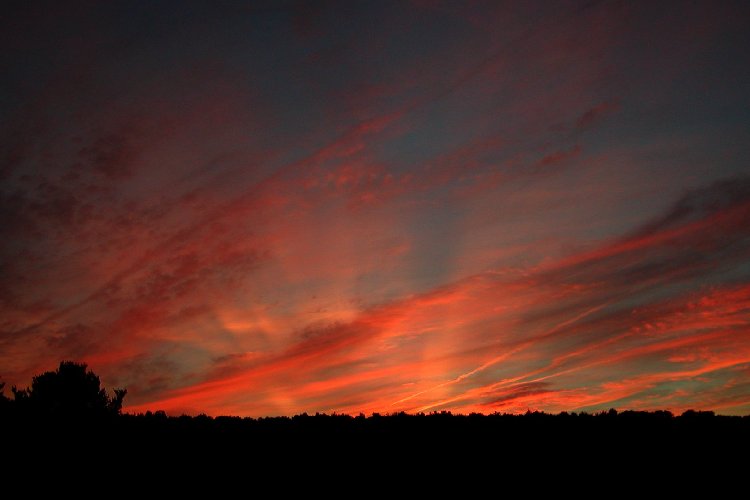 This is a picture I took in April of 2002. I was awakened at 5 AM by my husband to come look at the sunrise. As you can see, it was worth being woken up for!e-mail to: Prairie Wind Stock |